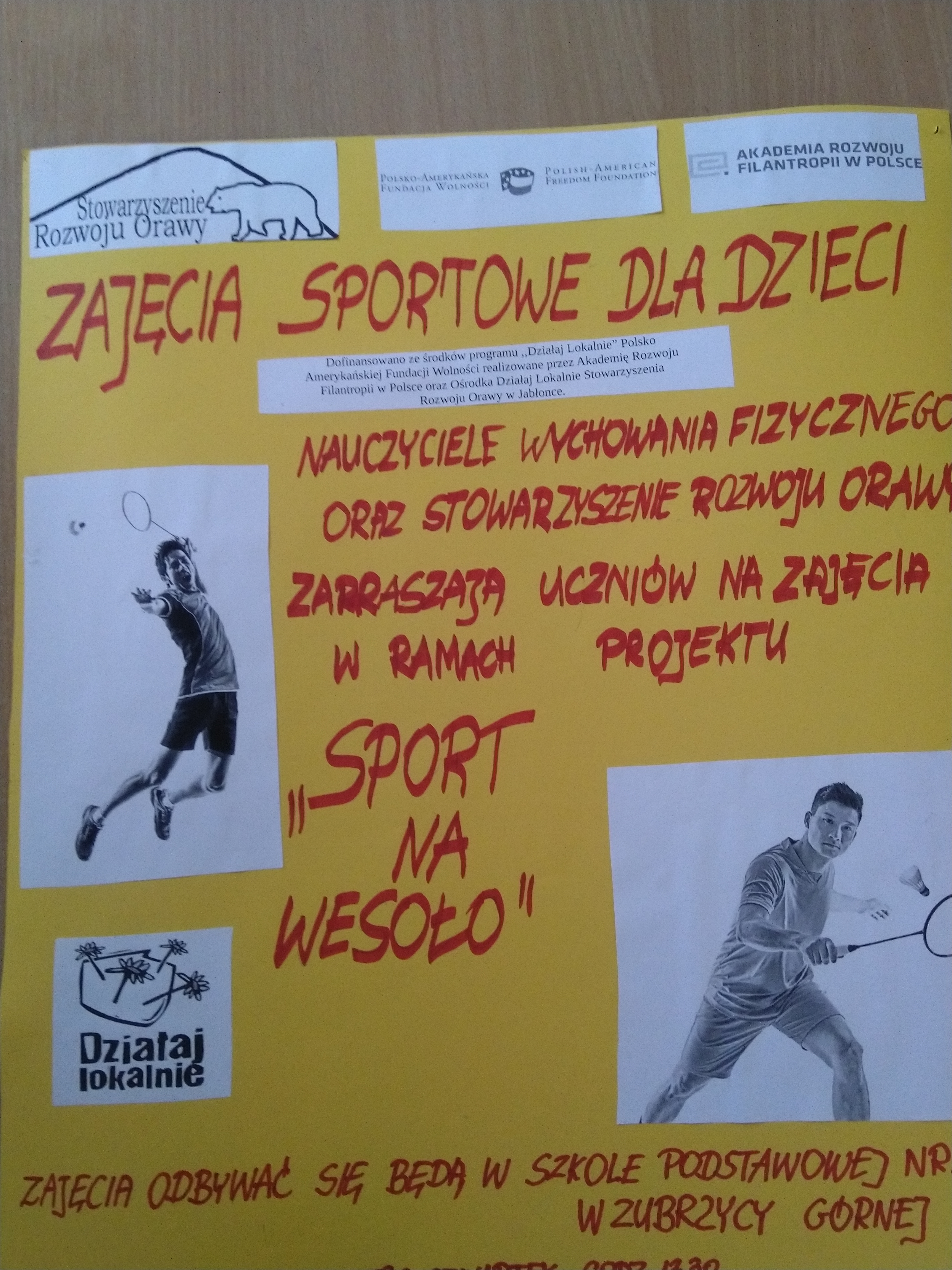 W tym roku nasza Szkoła Podstawowa Nr 1 w Zubrzyc Górnej otrzymała dotację do realizacji projektu: „Aktywnie i wesoło na placu zabaw” Dofinansowane ze środków programu „Działaj Lokalnie” Polsko-Amerykańskiej Fundacji Wolności realizowanego przez Akademię Rozwoju Filantropii w Polsce