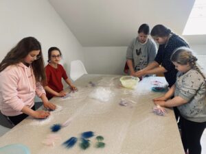 W związku z powyższym zorganizowaliśmy warsztaty manualne FILCOWANIE NA MOKRO, które poprzedzone były pogadanką na temat INTERNETU JAKO ZŁODZIEJA CZASU!  A potem powstały takie dzieła.