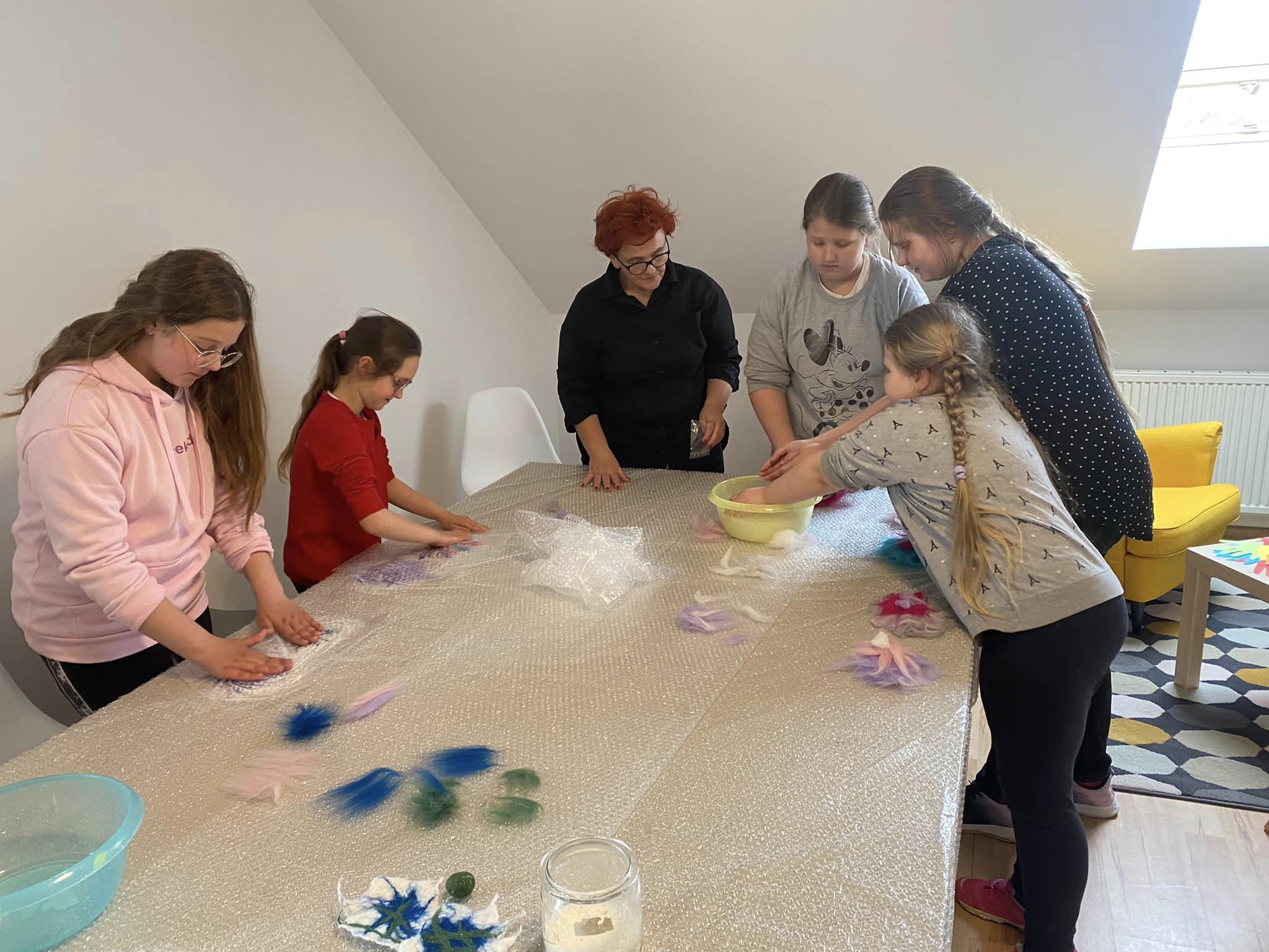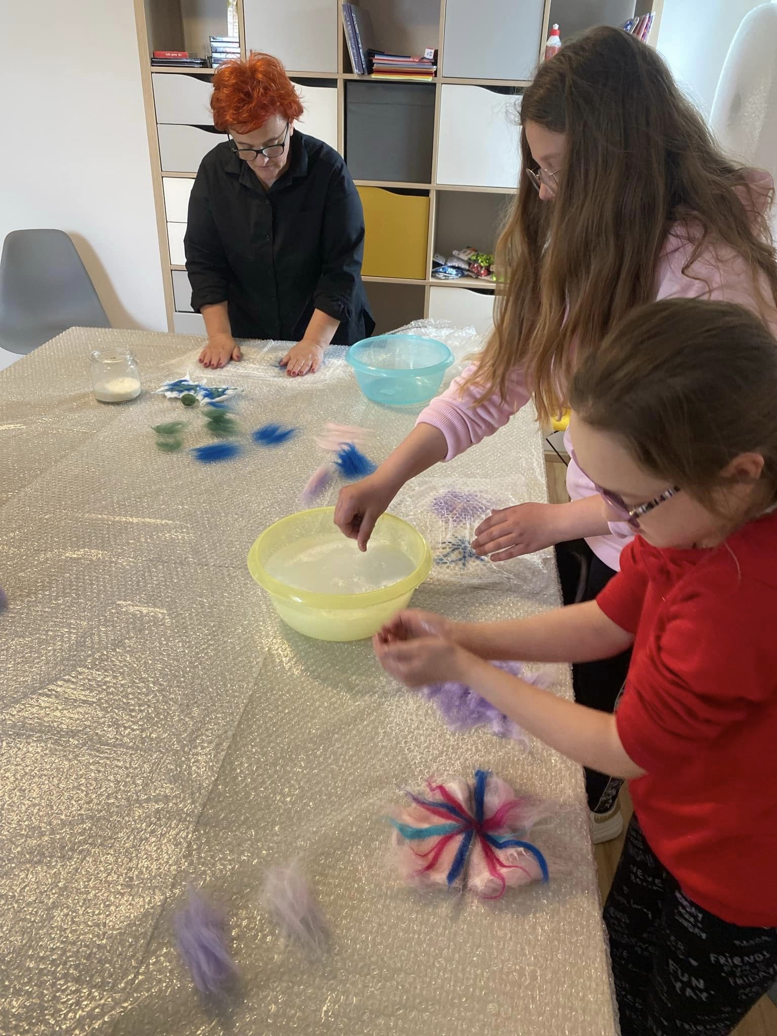 W związku z powyższym zorganizowaliśmy warsztaty manualne FILCOWANIE NA MOKRO, które poprzedzone były pogadanką na temat INTERNETU JAKO ZŁODZIEJA CZASU!  A potem powstały takie dzieła.