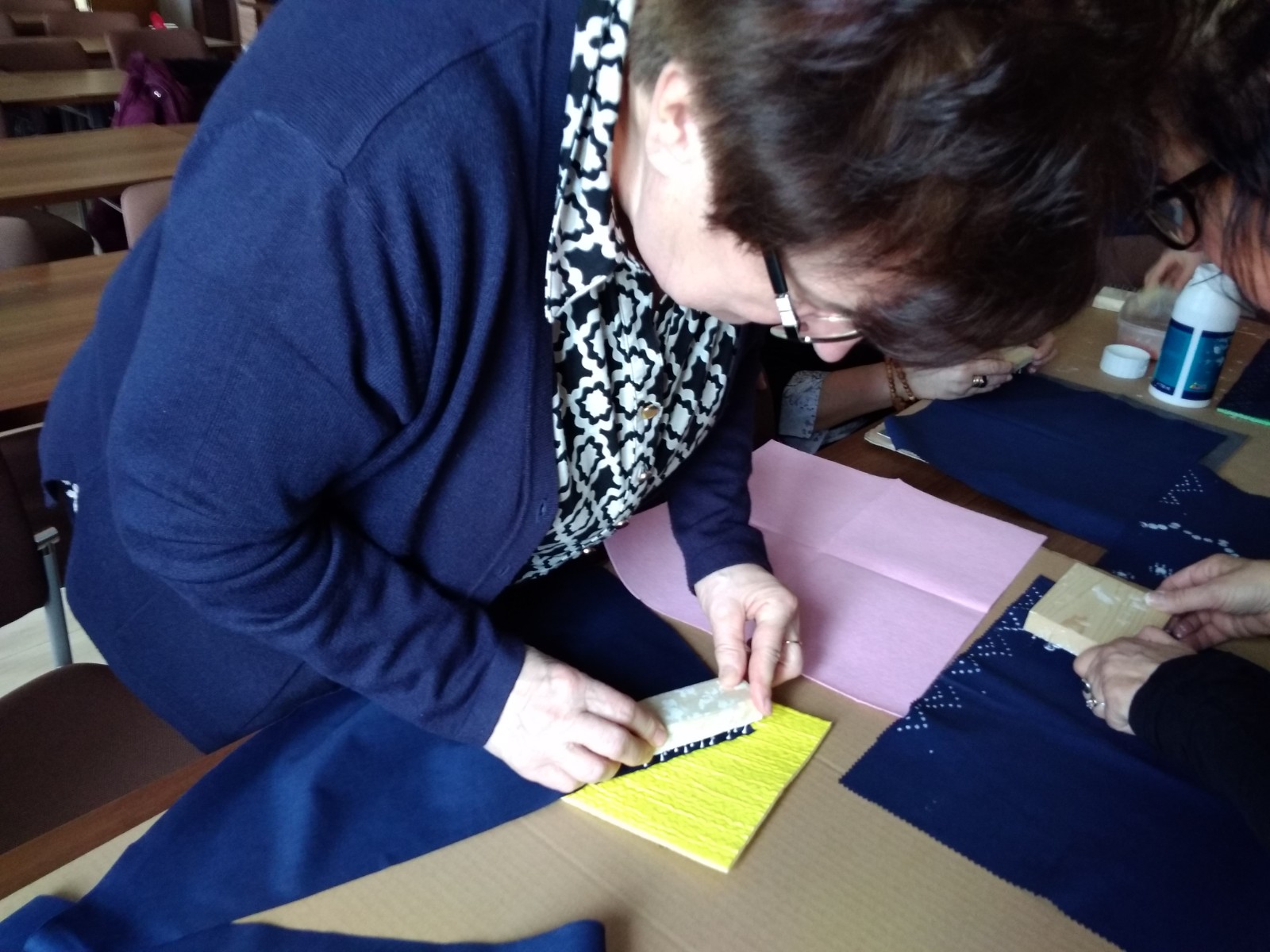 Uczestnicy spotkań dowiedzieli się z prelekcji multimedialnej podstawowych wiadomości o lnie, o roślinie indygowca z którego uzyskuje się barwnik, płóciennictwie i drukowaniu tkanin, o zachowanym budynku farbiarni w Orawce i jej rekonstrukcji z lat 20 tych XX w. w Orawskim Parku Etnograficznym. Część warsztatowa polegała na tym, że biorący udział własnoręcznie zadrukowali farbą akrylową przy użyciu prostych „klocków” kawałek tkaniny w kolorze granatowym. Uczestnicy warsztatów wykazali się ogromną inwencją twórczą, a tkanina zabrana do domu, będzie im przypominać o tej niezwykłej części dziedzictwa Orawy.